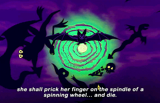 Perault’s version starts off pretty recognisably. A king and queen welcome a baby girl and invite seven fairies to bless the child. An eighth, older fairy shows up, and is aggreeably seated with the others. She had been living alone in a tower for so long, everyone had thought her dead, so that’s why she wasn’t invited initially. Six fairies gave their blessings for grace and beauty, and by then the old fairy was pissed. So she cursed the girl to prick her finger on the spindle of a spinning wheel, and DIE.