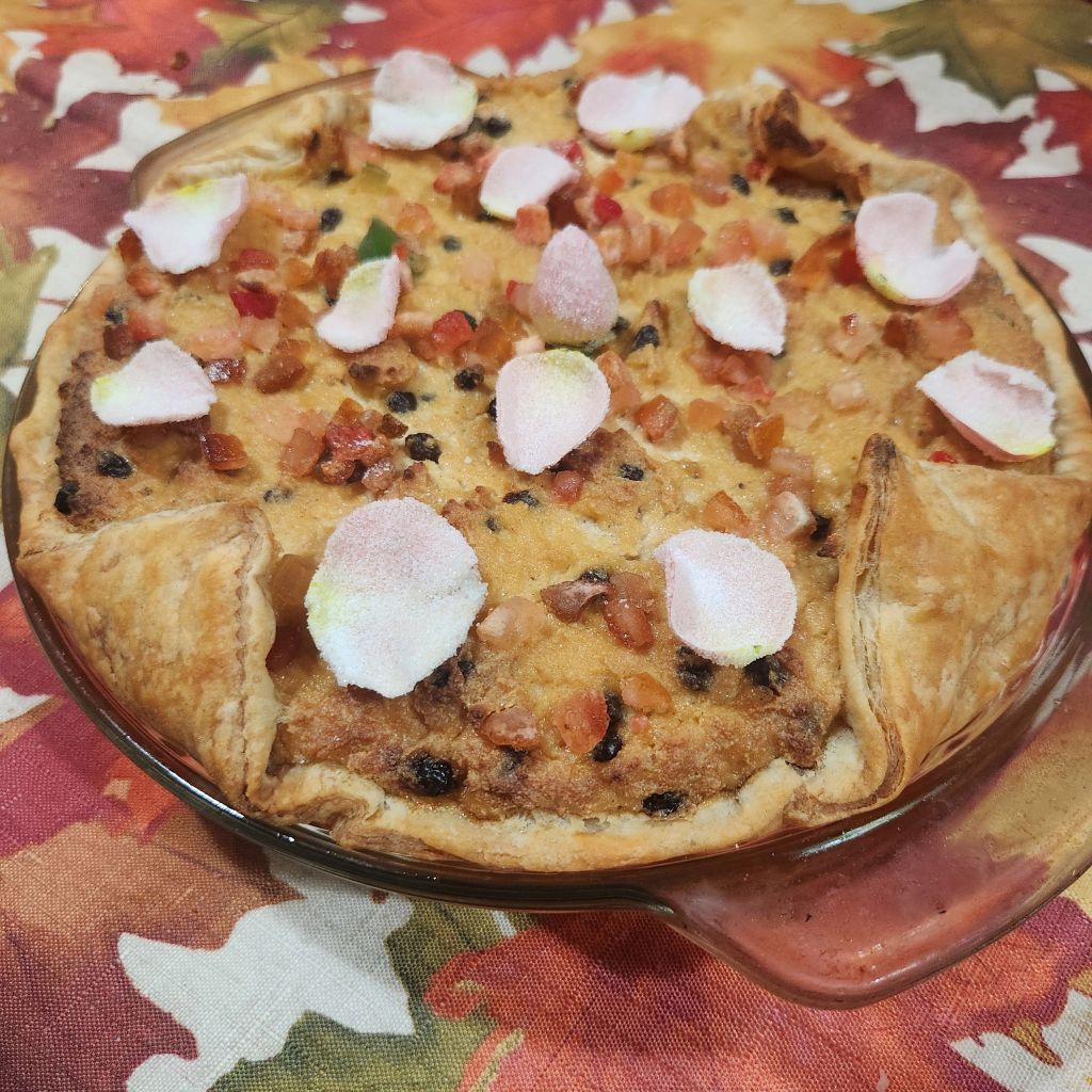 So, at the beginning of Book 4, coming out soon, hopefully, Johanne reluctantly hosts a dignitary at Parry House, and during dinner, FOR PLOT REASONS, a lot of dishes feature almonds, in some way. The dish in the lineup I was most enchanted by was a sweet and spiced marrow pudding. In December of 2022, I did try it, but I was struggling to find the correct kind of puff pastry, so I had to adapt and it came out all wrong, so this year, I’m determined to do it properly.